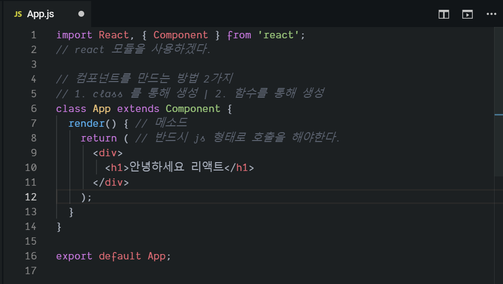 * 함수형 컴포넌트를 사용할 경우 더이상 상단에서Component 를 불러오지 않아도 됩니다