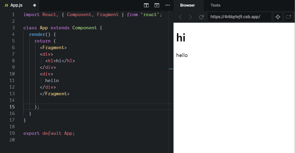 `Fragment` 를 통해서 불필요한 div 를 없앨 수 있다.