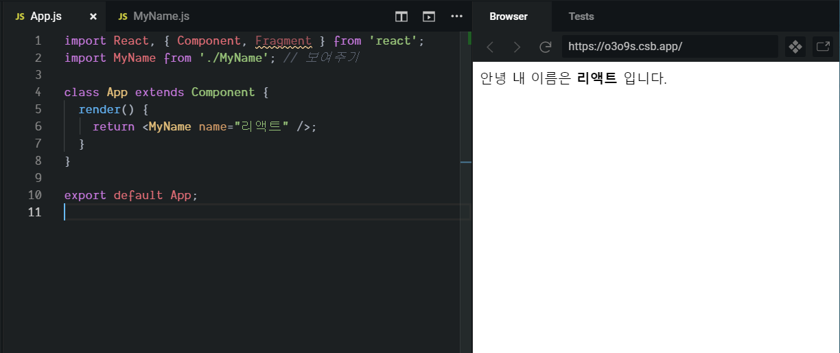 1번:: `MyName` 컴포넌트에 render 위에 아래의 코드를 입력 => class 내부에 static 값을 설정해주는 것