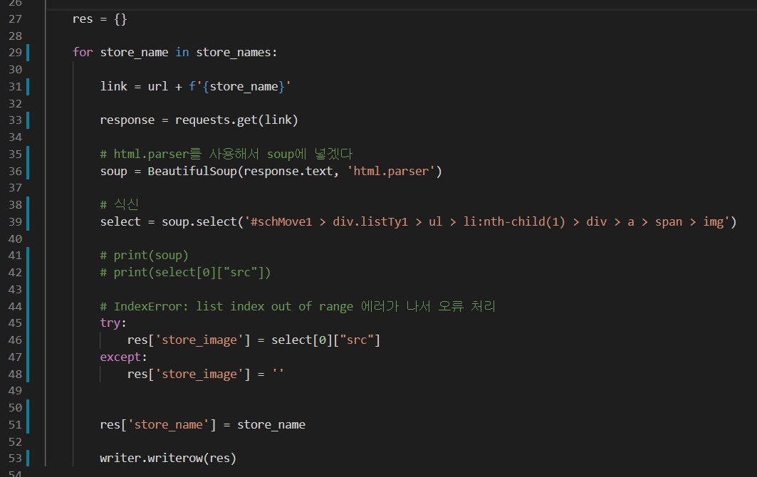 오류 처리 코드를 추가해줬습니다~ (코드 45~48)