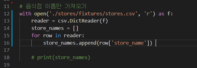 기존에 갖고 있는 CSV 에서 음식점의 이름을 가져왔습니다